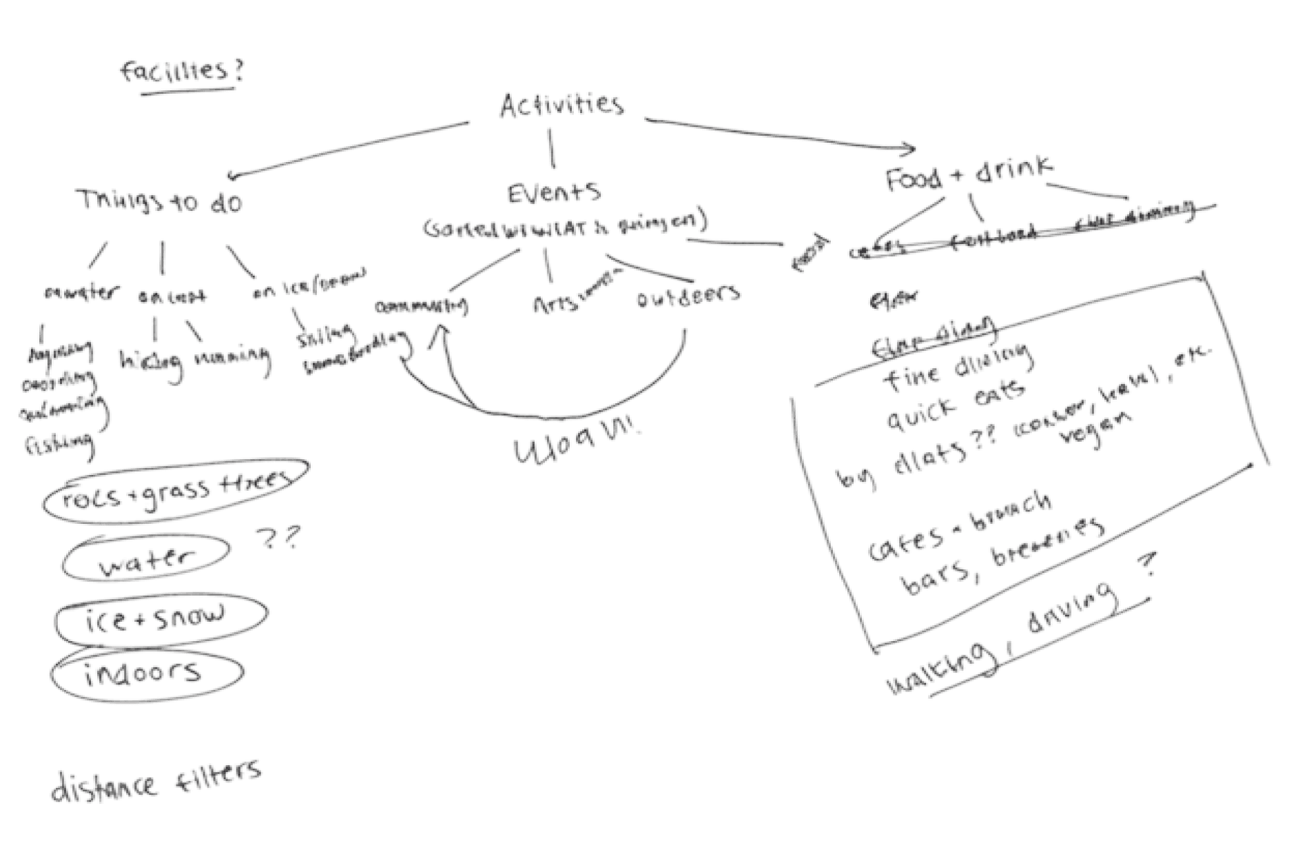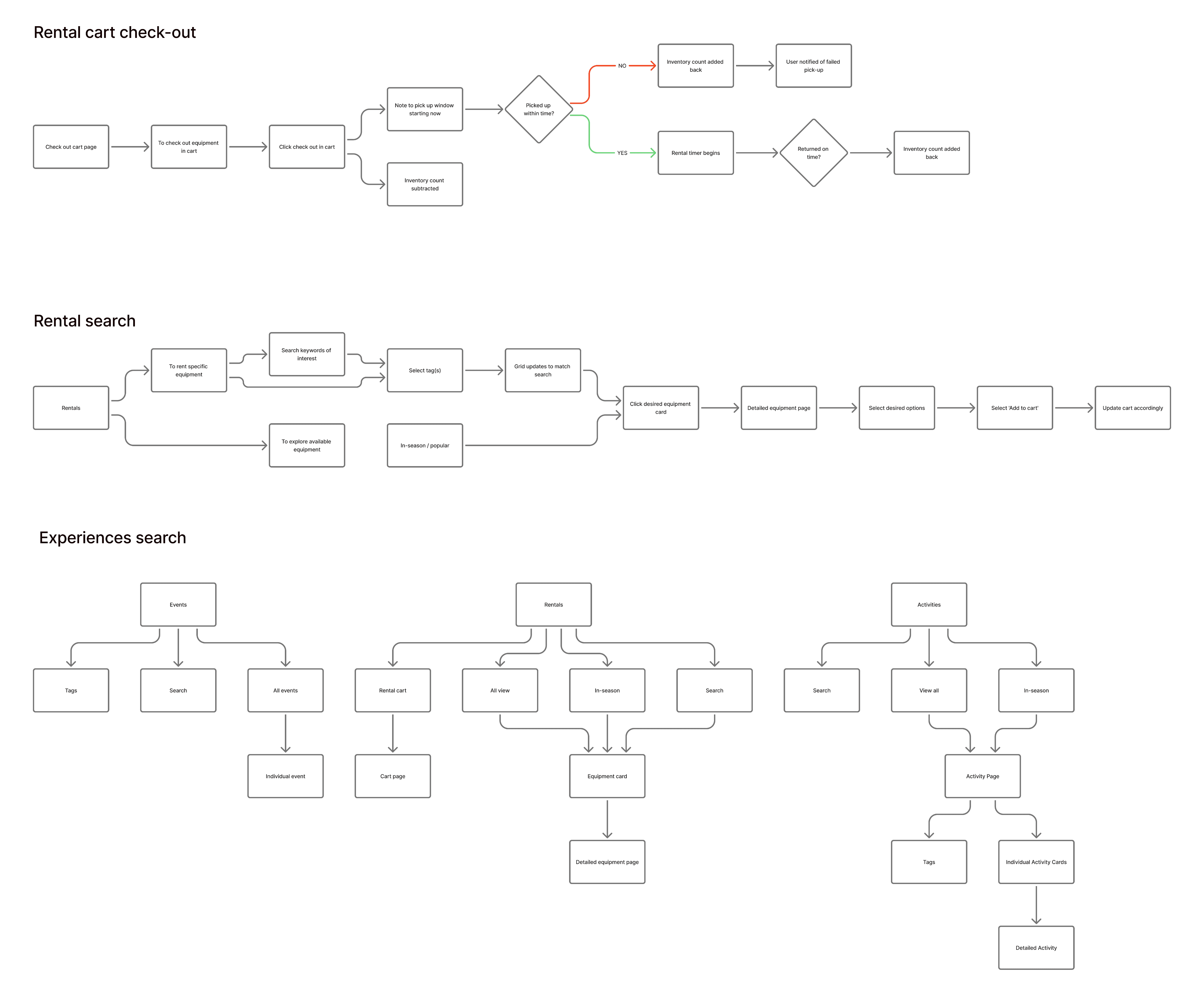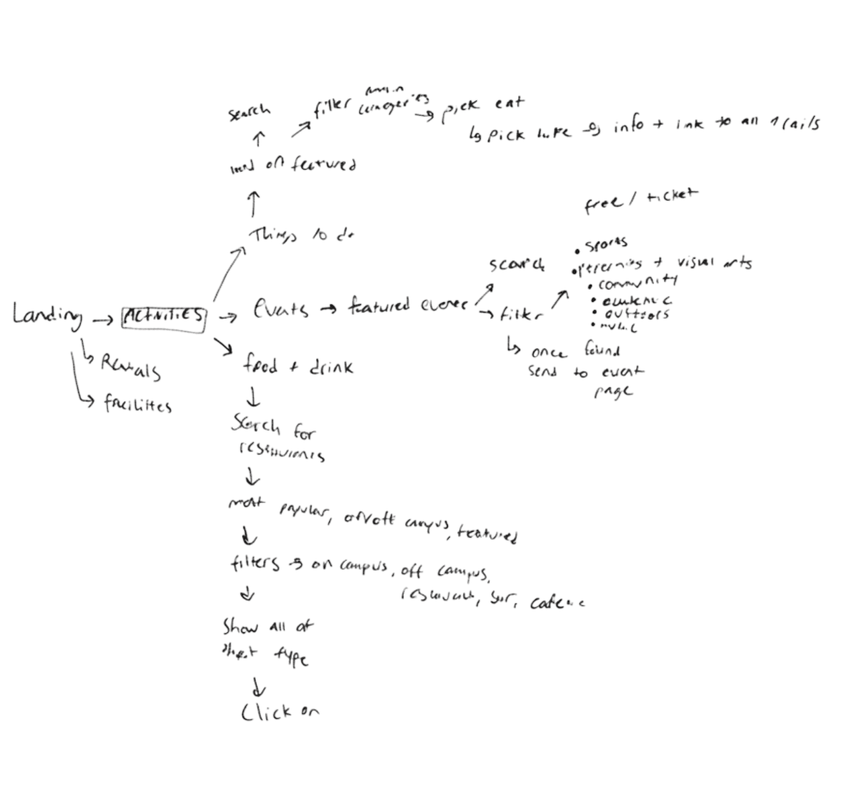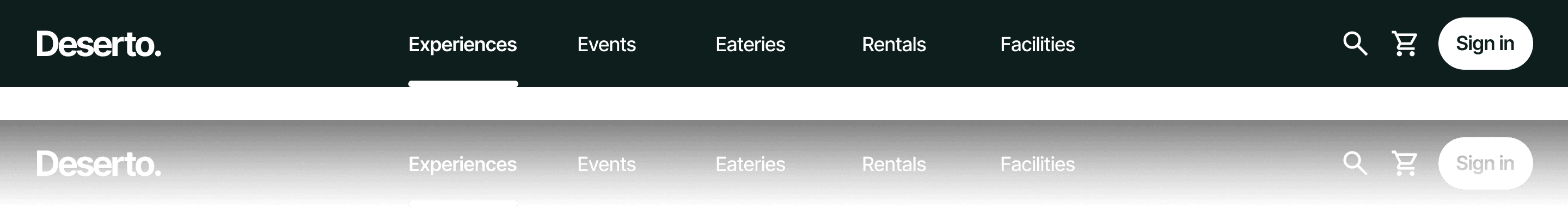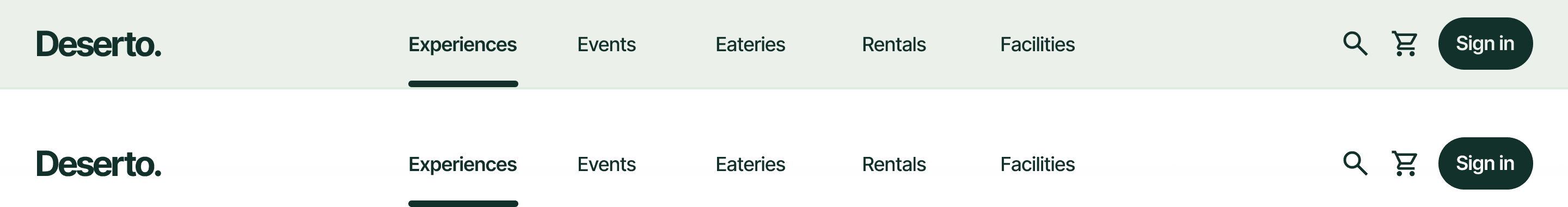 Five clear top-level sections — Experiences, Events, Eateries, Rentals, Facilities — replaced the sprawling Explore dropdown grid. All activities in Explore were organized into specific categories as a dropdown.