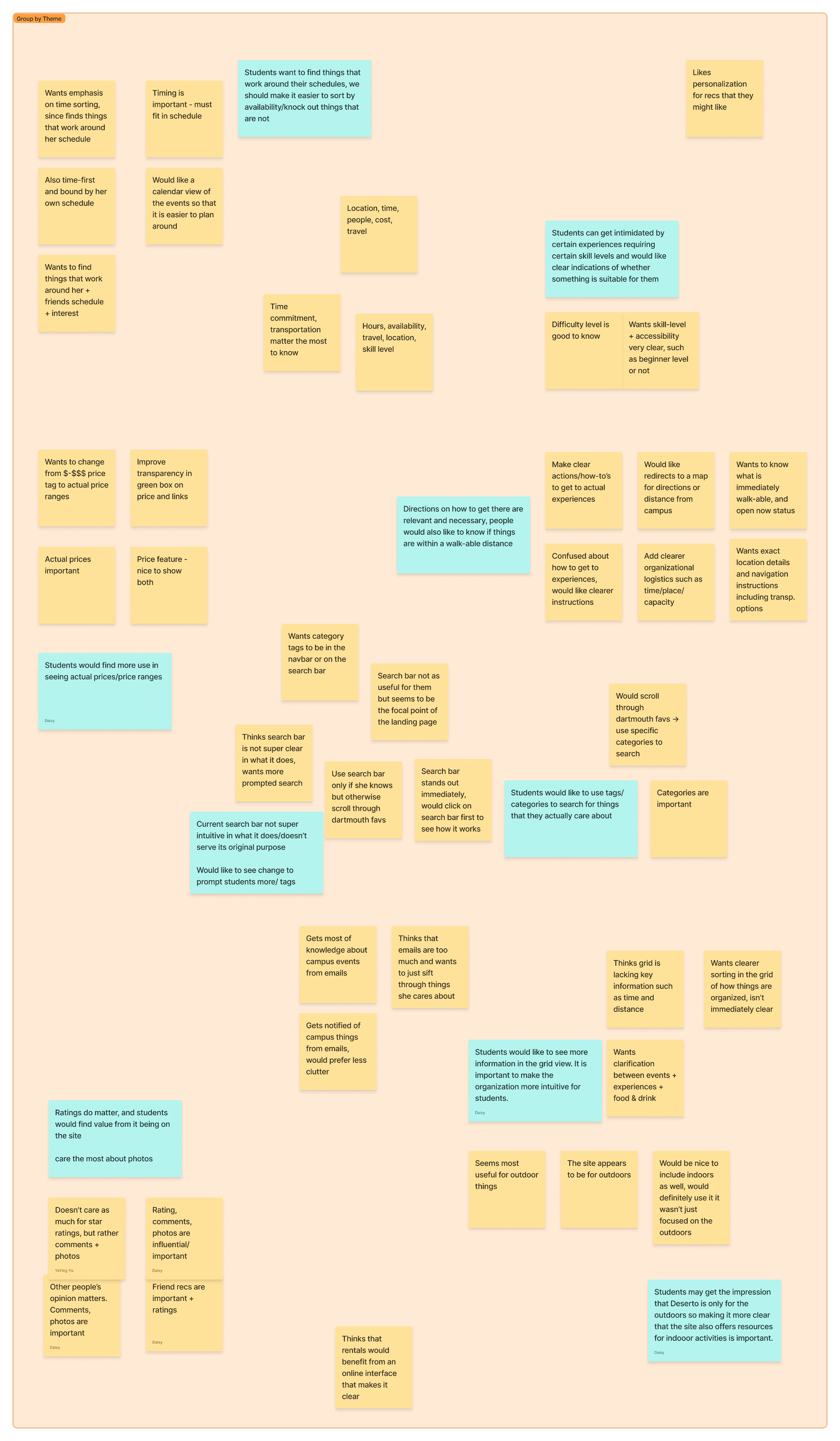 After 18 interviews across all class years, we affinity-mapped our data to surface what was actually driving the gap between resources and students.